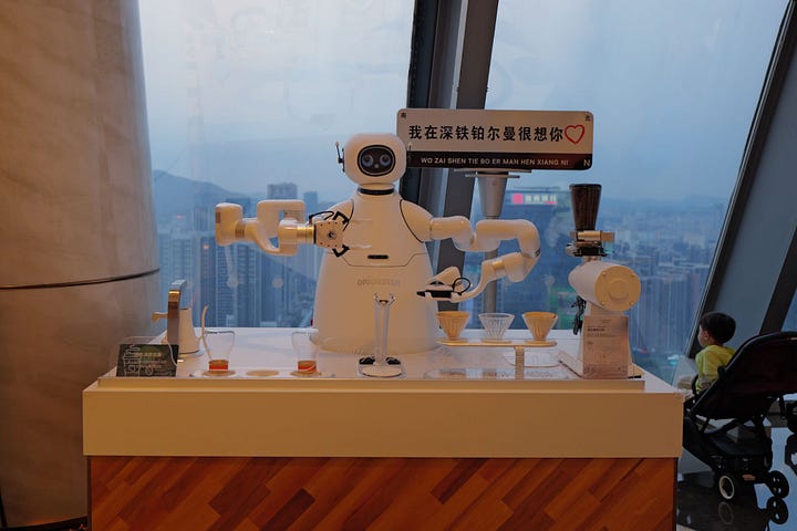 I didn’t see many high-end coffee shops in China. Robot baristas seem to fill this niche: delivering the premium experience of being served without the need for inefficient human labour.